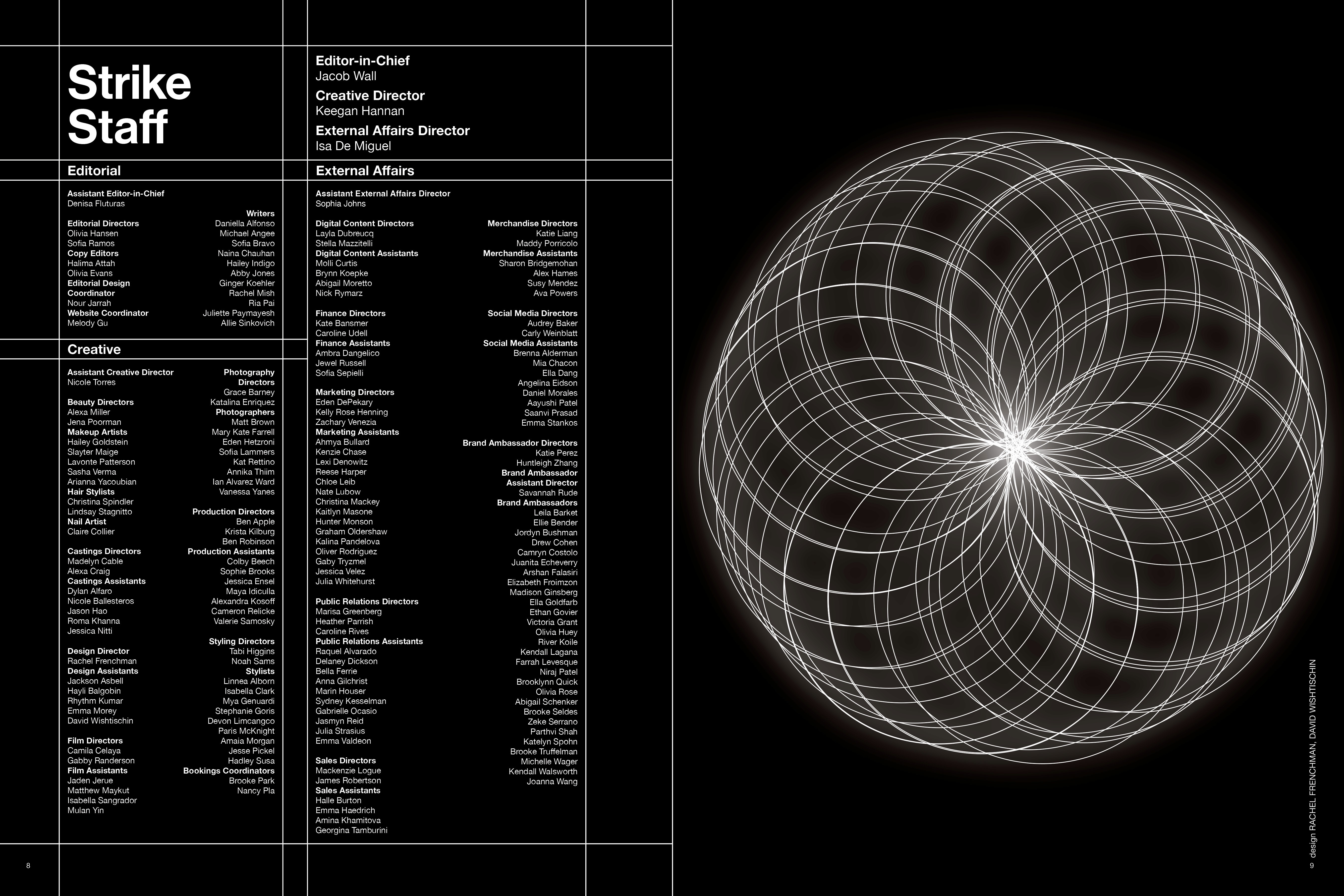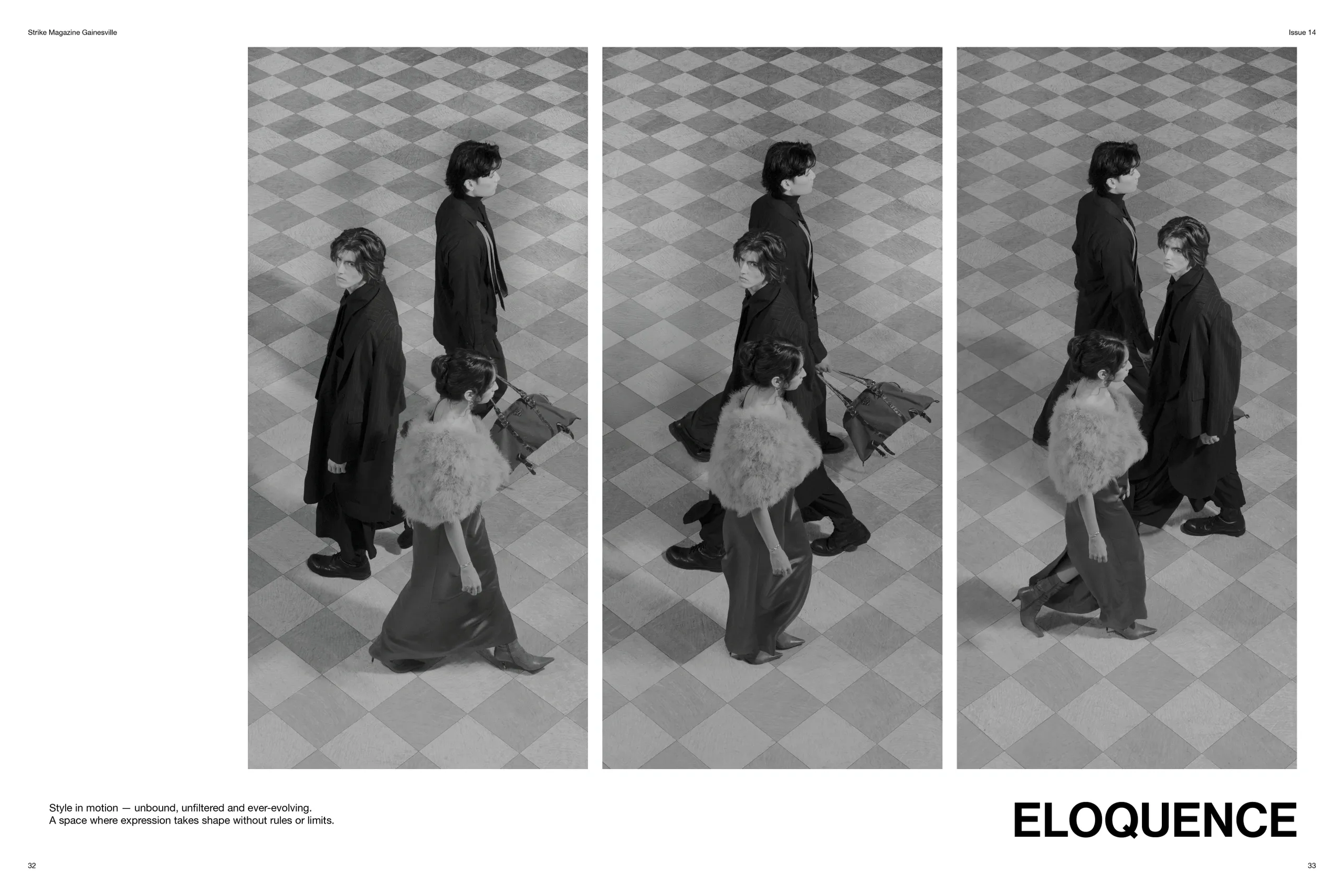 Featured are editorial designs for Strike Magazine, Gainesville. This work reflects a cohesive and evolving design voice across multiple issues. Through refined layout and typography, each piece elevates fashion narratives with polished continuity. The work balances consistency with experimentation, creating sophisticated visuals that feel both current and timeless.