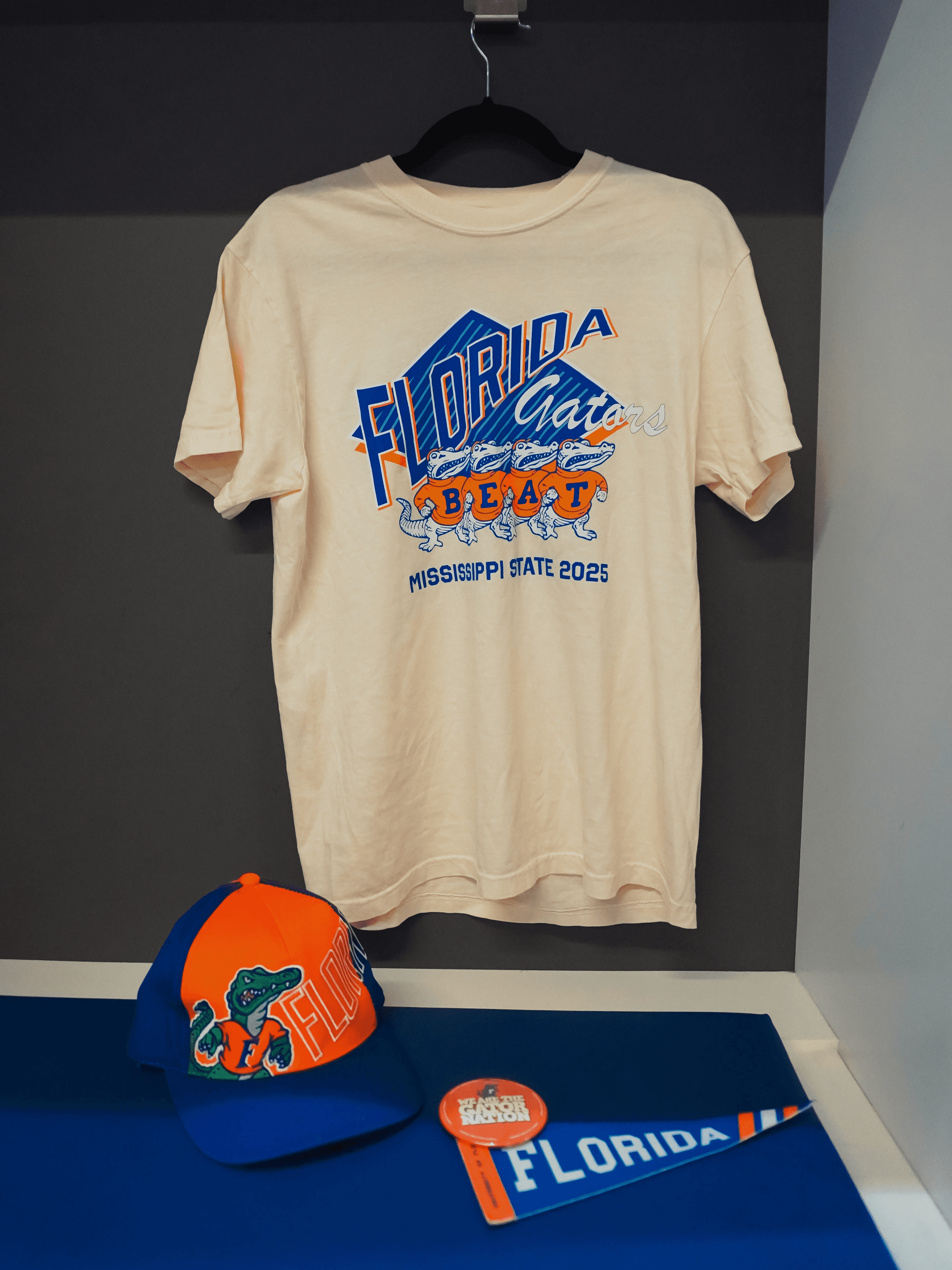 Work for the Florida Gators translates school pride into high-impact design. From the BMW car wrap created with Genesco Sports Enterprises to the Beat Tee series for the Florida Alumni Association, the work blends marketing visibility with a clean, modern take on longstanding game day traditions.